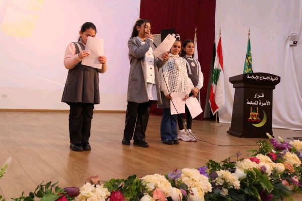استُهلّ الاحتفال بتلاوة عطرة من القرآن الكريم تلاها الأستاذ علاء مرعي، ثم ألقت الطالبات ماريا دلال، ومنى السنكري، وعائشة حدارة، وزينة تركماني كلمة الطلاب، فتناولن فيها الدروس والعِبر المستفادة من هذه الذكرى المباركة، وعبّرن عن فخرهن واعتزازهن بانتمائهن إلى ثانوية الإصلاح الإسلامية وما تمثّله من بيئة علم وتربية وقيم.
